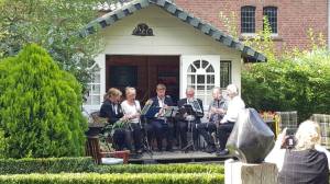 Zondagmiddag trad het Dordrechts Klarinet Ensemble op voor een belangstellende publiek in een zonovergoten tuin en dat was reuze boffen, want de zaterdag en de maandag gingen onder in nattigheid.
