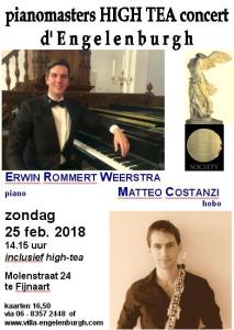 In de serie Meesterconcerten van de Young Piano Masters Society brachten pianist Erwin Rommert Weerstra en hoboïst Matteo Costanzi op 25 februari een recital van hoog niveau. Erwin Rommert, geen onbekende in d’ Engelenburgh, gaf al eerder hier kwalitatief hoogstaande uitvoeringen.