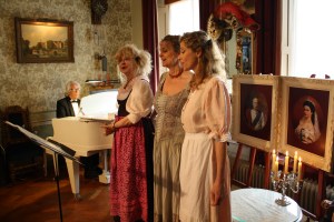 Strauss, Lehar, Stolz, bekende namen die onsterfelijke muziek schreven en er was dan ook niemand die niet af en toe stiekem mee-neuriede. Met twee schilderstukken van het Oostenrijkse keizerspaar op de achtergrond en passende kleding zongen de drie sopranen de sterren van de hemel.