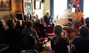 De luisteraars vonden dat een onverwachte extra ervaring. Niet alleen konden zij alle teksten verstaan, deze gaven ook stof tot nadenken. Ernstig, melancholiek of met humor. Mirjam en ‘haar’ pianist Ed Boekee wisten er een fantastische en gevarieerde middag van te maken. Het prachtige weer was een kadootje en de tuin werd in de pauze en na afloop goed gebruikt.